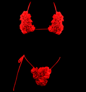 The Flower bomb©️ is the first 3D swim set created by Eau Noir Swim with the Love for nature and feminine beauty in mind.The Flower bomb©️ is a significant two-piece bikini set that showcases details of multiple hand-sewn flowers. The details are bold yet soft and flowing.